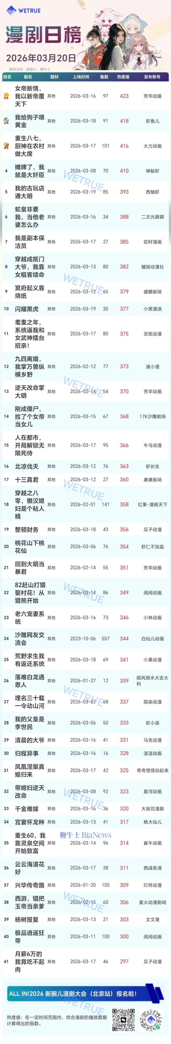 易投配资 20日漫剧&AI真人剧日榜: 《女帝断情, 我以新帝覆天下》漫剧第一